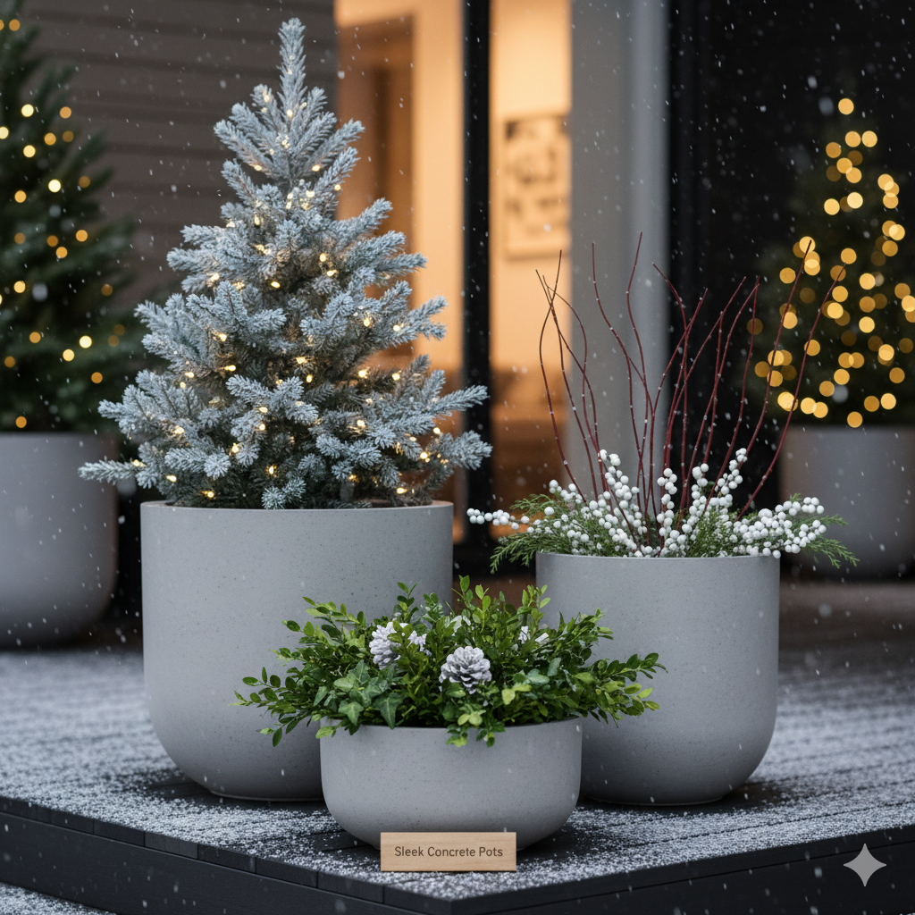 4. Sleek Concrete Pots
