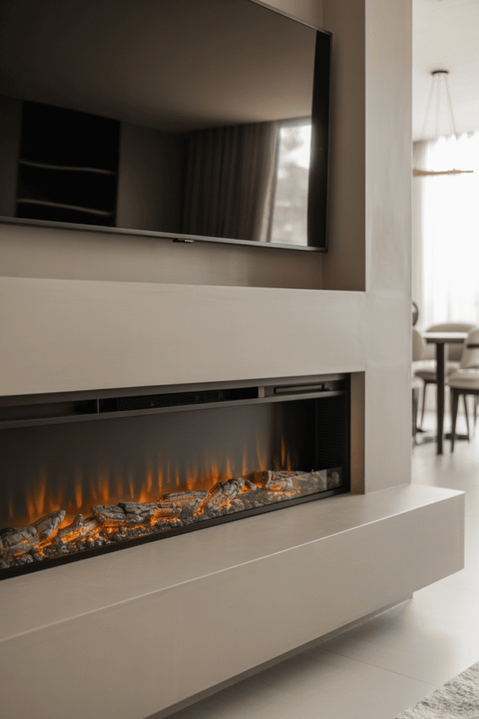 Linear wall-mounted designs bring a touch of luxury to modern spaces. Paired with glass or stone surrounds, they create a seamless look that transforms your living room into a sophisticated retreat.