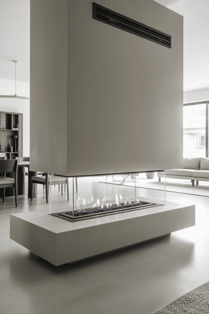 Two-sided fireplaces shine in open floor plans, warming multiple spaces while creating a stunning visual divide. They’re practical and stylish, perfect for modern homes that embrace open living.