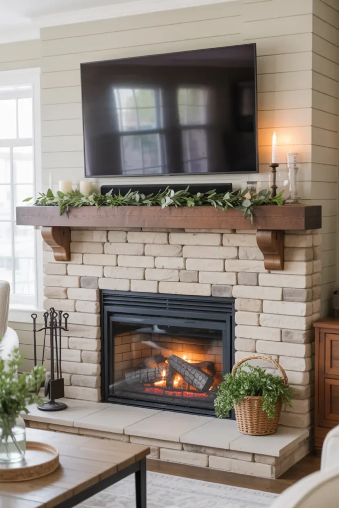 A statement mantel can turn your fireplace into an eye-catching focal point. Whether you choose wood, stone, or a painted finish, it’s perfect for seasonal decorating and displaying treasured items. For a farmhouse touch, consider a thick rustic wood beam mantel that adds warmth and character.