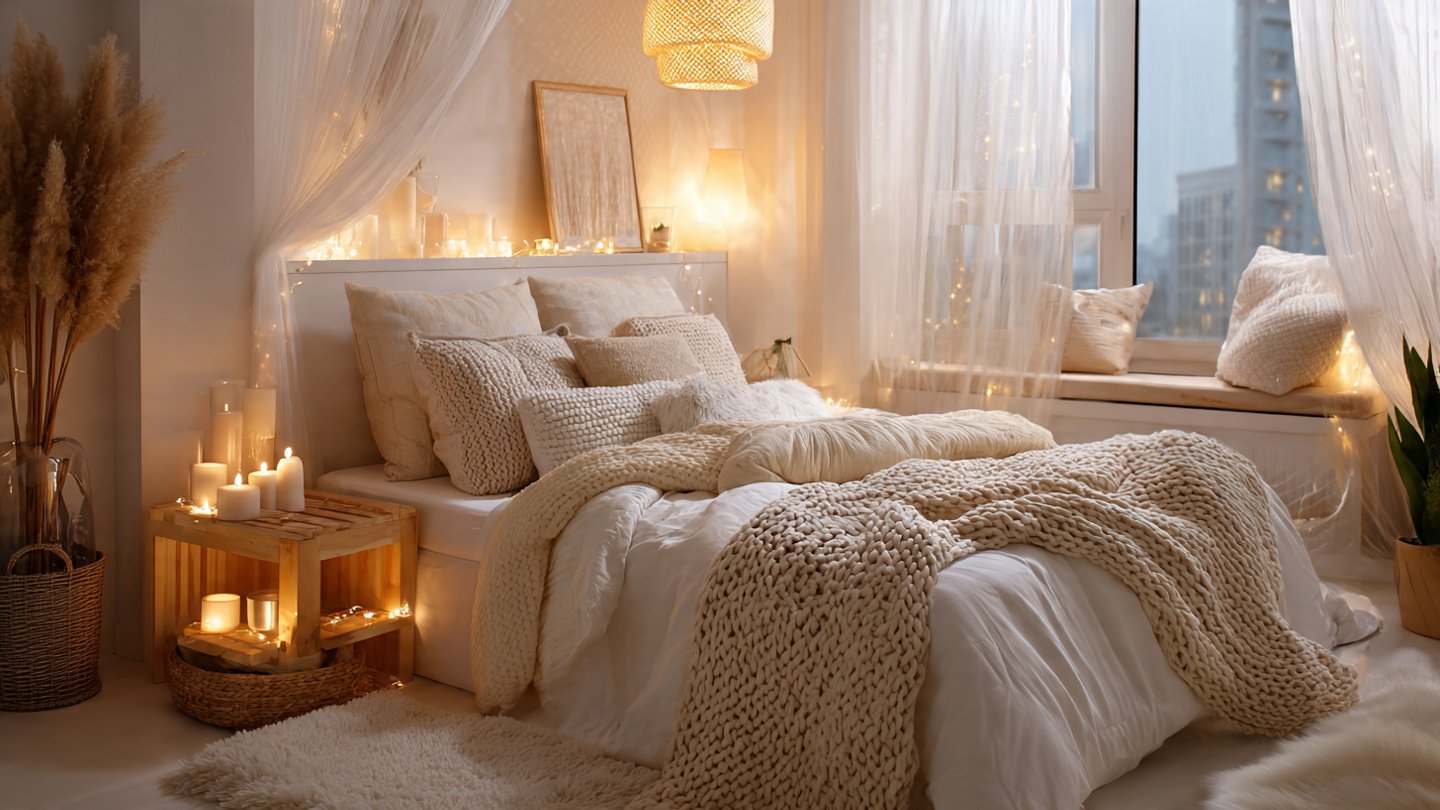 - Layer Textured Bedding — Use linen, cotton, and knitted throws in varying shades of warm white for depth and cozy comfort.